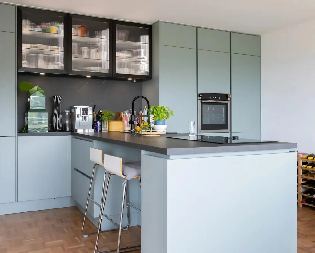 Grifflose Wohnküche für Penthouse in Karlsruhe