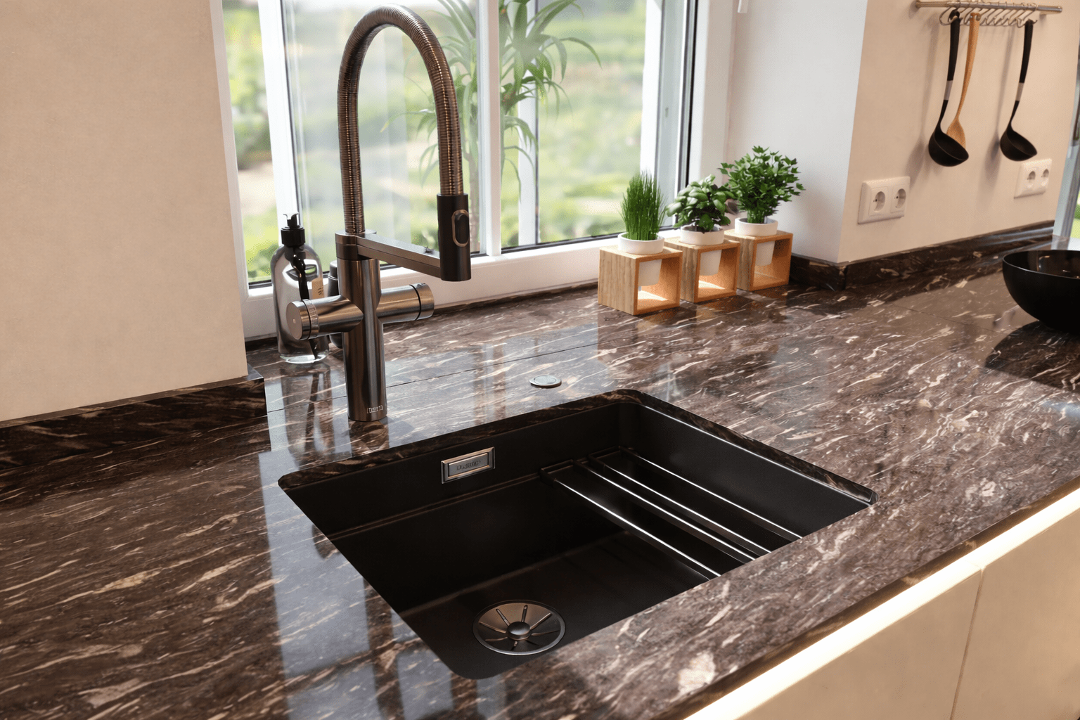 - Spüle vor dem Fenster für optimales Licht